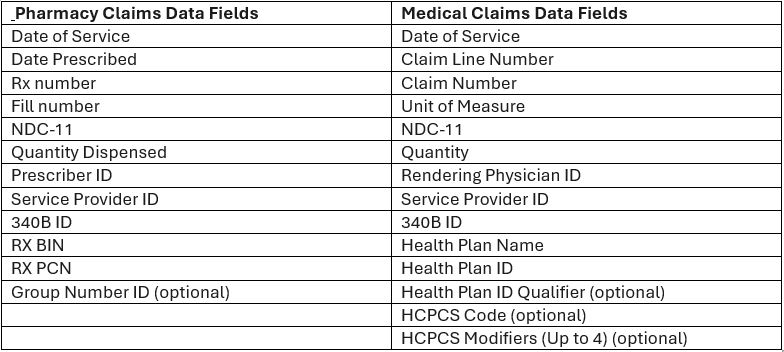 - CEs must continue to purchase potential 340B-eligible drugs from a 340B account but will be charged wholesale acquisition cost (WAC). CEs will submit claims-level data (fields noted below) post-dispense to receive rebates that bring the net price to the 340B ceiling price.