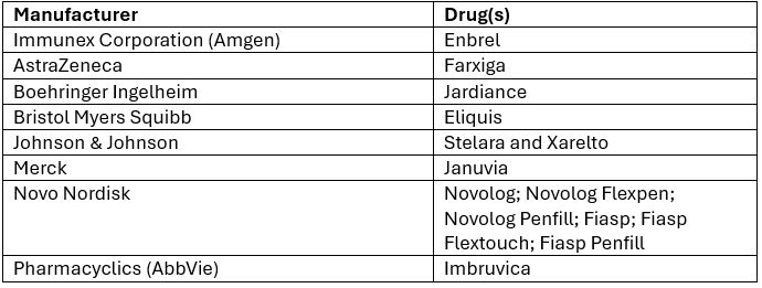 Manufacturers and Drugs Approved Effective January 1, 2026